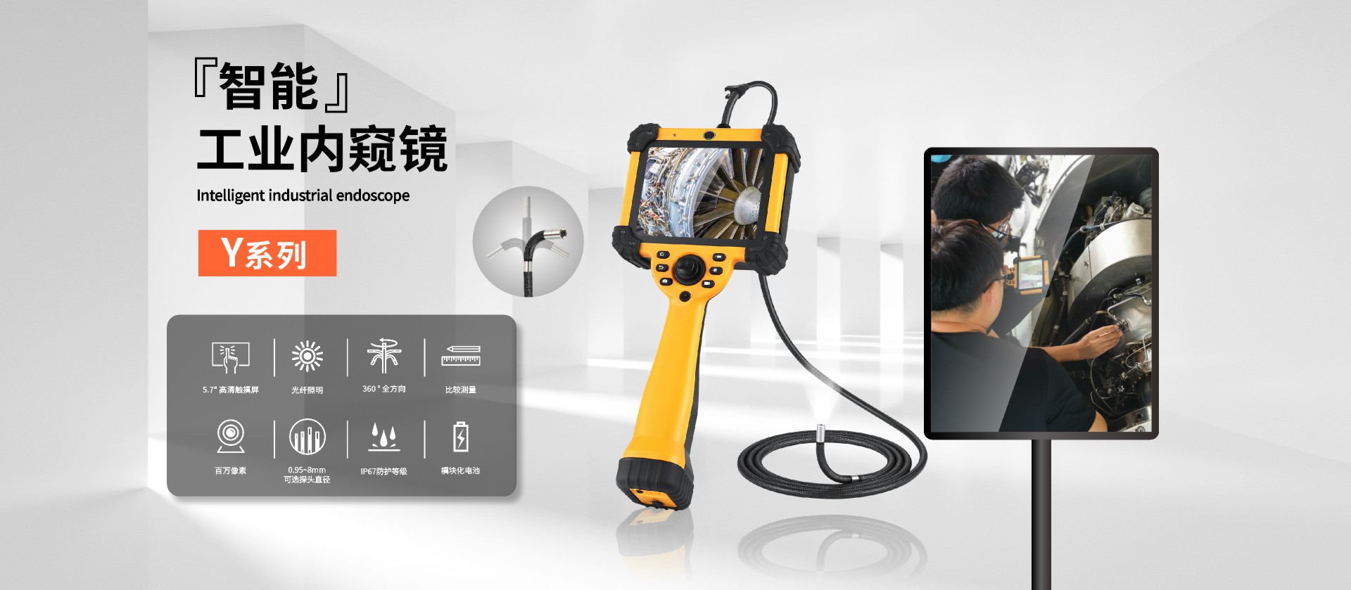 Y系列6mm直徑工業(yè)內(nèi)窺鏡,搭載智能操控系統(tǒng),6mm探頭直側(cè)一體雙鏡頭,后置LED光纖導(dǎo)光,照明更清晰,耐磨鎢絲管可360°全方位旋轉(zhuǎn),航空制造業(yè)檢測專用,可檢測飛機(jī)活塞發(fā)動機(jī)氣缸內(nèi)的積炭、燃燒室壁的橫截面以及門閥的情況,還可檢查渦輪發(fā)動機(jī)的渦輪葉片、噴嘴導(dǎo)流葉片,以及外來物損傷。